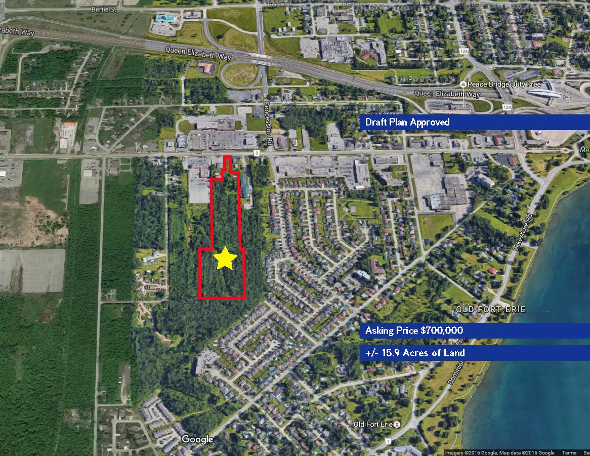 Located across from a major commercial retail plaza anchored by Sobey’s and Shoppers Drug Mart. The site is near recently built residential communities and has an approved draft plan proposal for single residential building lots with frontages ranging from 45 ft to 60+ ft. All municipal services are available, including a sanitary sewer system connected to the adjacent subdivision.